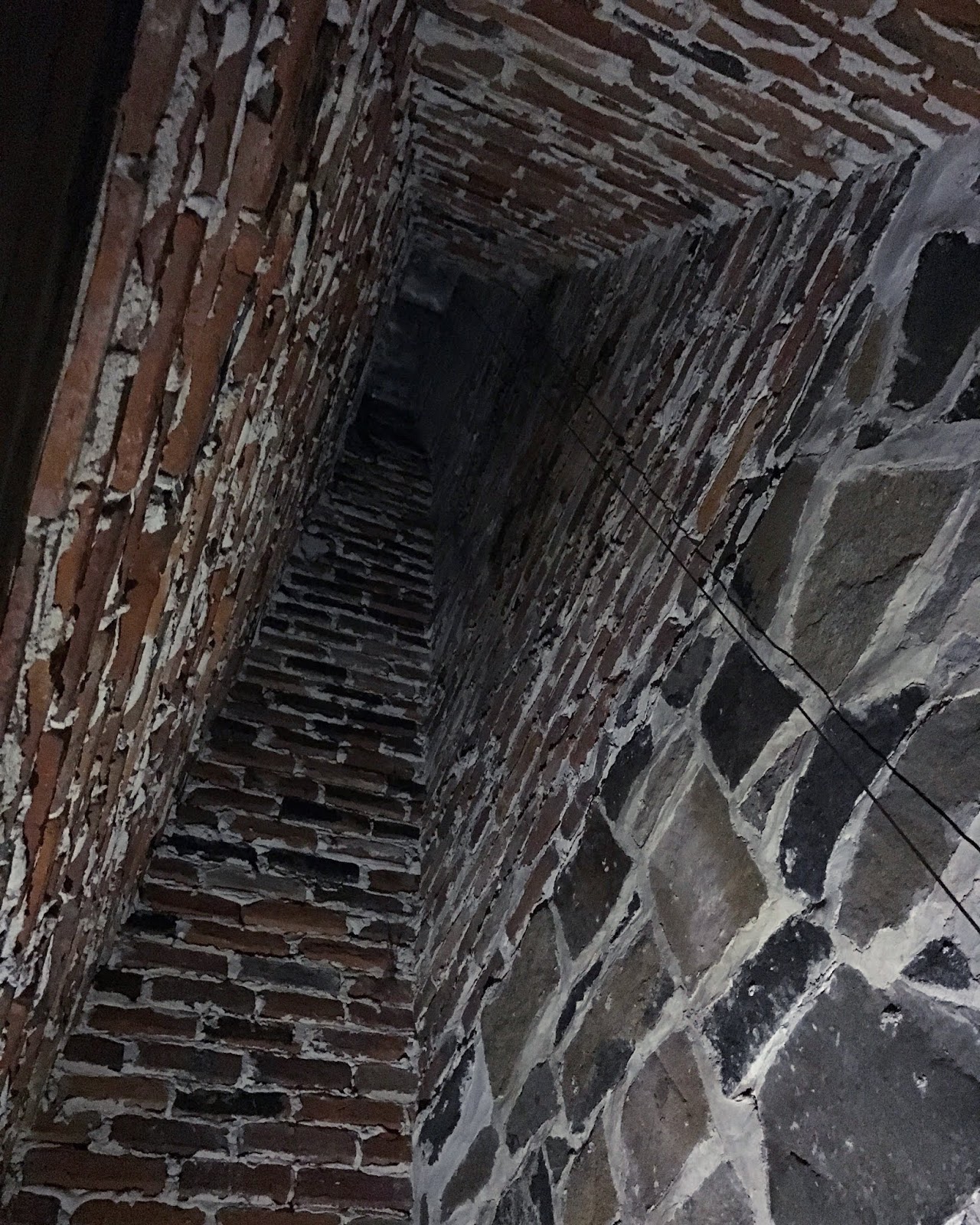 graffiti masked by decades of chipped cover-up paint.