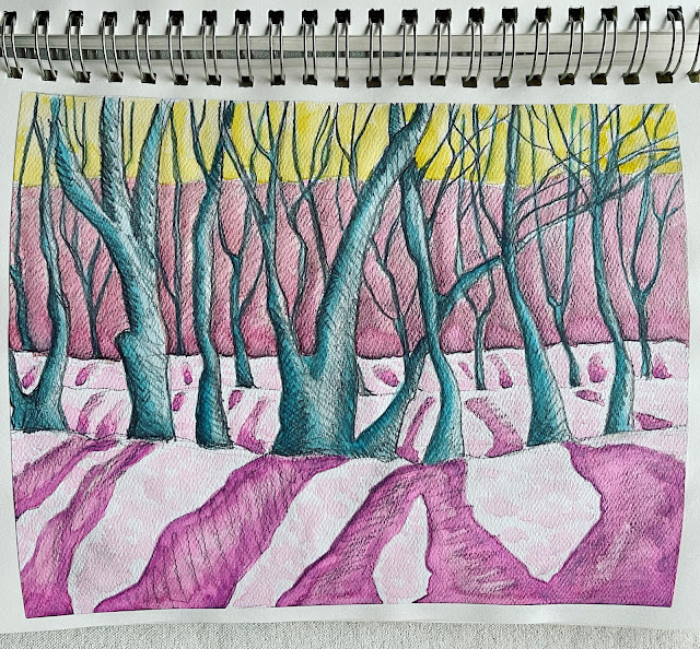 Pencil, colored pencil, watercolor